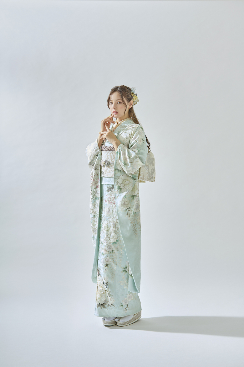 空気を含んだような柔らかい質感が、振袖の優しい色合いを引き立てます。